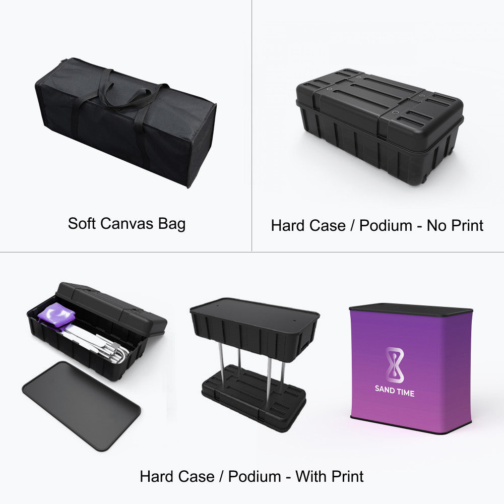 Our tension displays consist of a lightweight but durable aluminum hardware and a fabric dye sublimated print. The hardware is inserted inside the print, much like a pillow into a pillowcase. The fabric print is stretched tight across the frame and zipped close.